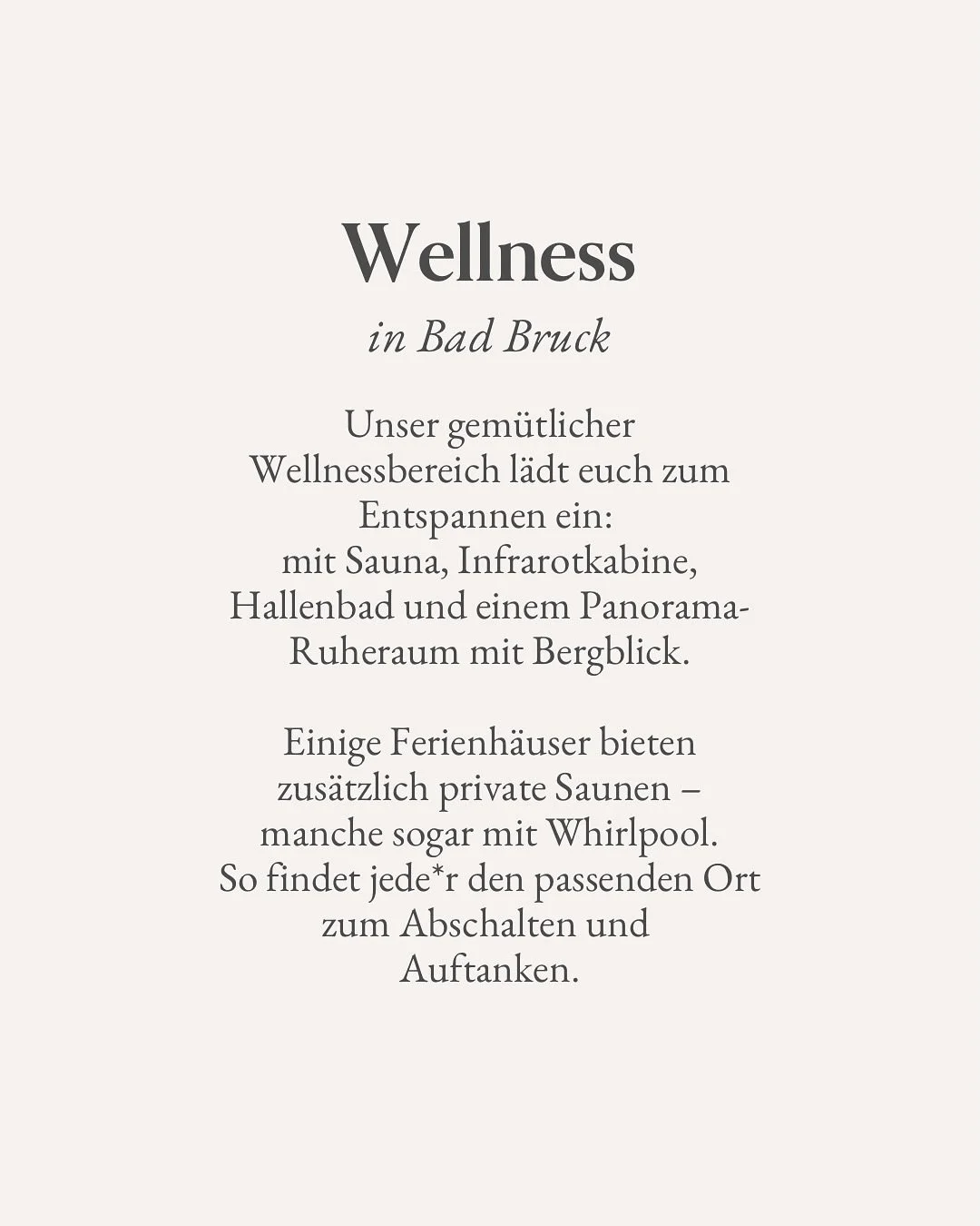 Erleben Sie ganzjährig einen erholsamen Aufenthalt in unseren familienfreundlichen Ferienwohnungen und Ferienhäusern im Gasteinertal. Beginnen Sie den Tag mit frischen Backwaren aus unserem Dorfladen, nutzen Sie unsere Verleihoptionen für E-Autos, E-Roller und E-Bikes und entspannen Sie zum Abend in unserer Spa Oase! Entdecken Sie unsere Fotogalerie und buchen Sie direkt online Ihr Urlaubserlebnis.